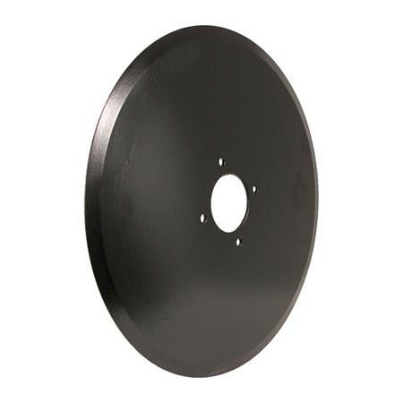18" Single disc opener blade, .197" thick, single bevel. Has 3.03 inch center hole, four .406 inch holes for 3/8 inch bolts on 4.4 inch centers. Made from Boron Steel.