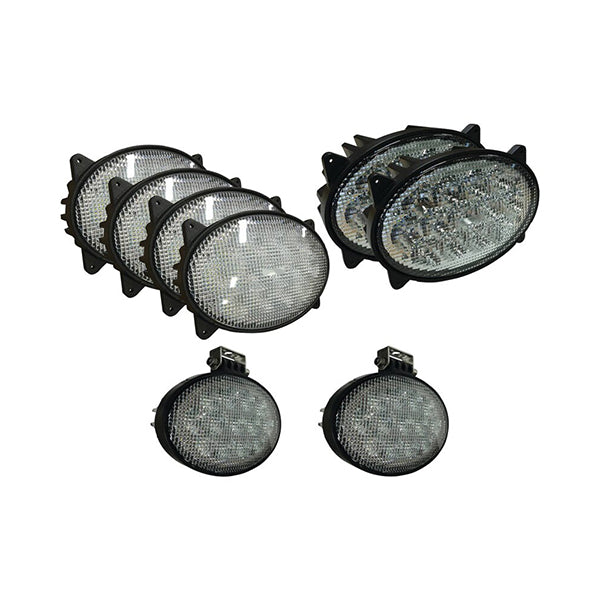 Uses original mount and wiring. This kit fits early model combines, combines with 6 lights on top of the cab. If your combine has 8 lights on top, please refer to our TL8050. Includes: 4 TL8420 Lights (Outer Cab Light), 2 TL8520 (Center Cab Lights) & 2 TL5655 (Stubble Light), Stainless Steel Hardware, and Connectors for Upper Cab Lights.