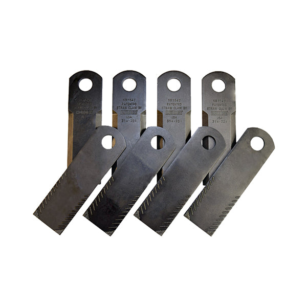 Kondex Straw Claw® chopper blades deliver the ultimate value in residue management and product performance. Their patented, self-serrating design uses a laser cladding additive on a through-hardened blade to control product wear and maintain blade sharpness longer. Controlled wear results in less chipping and blade damage, which in turn helps better maintain rotor balance and minimize maintenance.