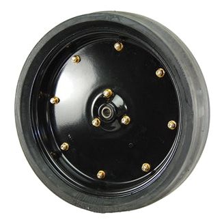 3.2" x 16" gauge wheel assembly for CIH planters with the RID profile tire. Has CFC part number H750 bearing installed. Nylon wheel half on outside, steel on inside.